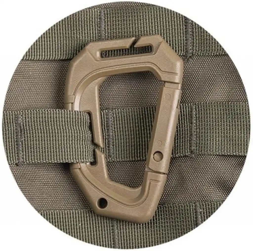 Taktik bir karabina veya 'tac-link', aksesuarları bir sırt çantasına veya sırt çantasına takmak için kullanılan hafif bir klipsdir. Bu özel model, PALS veya MOLLE dokumaya takmak için iki yuvaya ve aksesuarları sabitlemek için yaylı bir kapıya sahiptir. Bunlar ABS plastikten yapıldıkları için, metal üzerinde rahatsız edici herhangi bir gürültü üretmeyecekler ve boyayı çizmeyecekler.