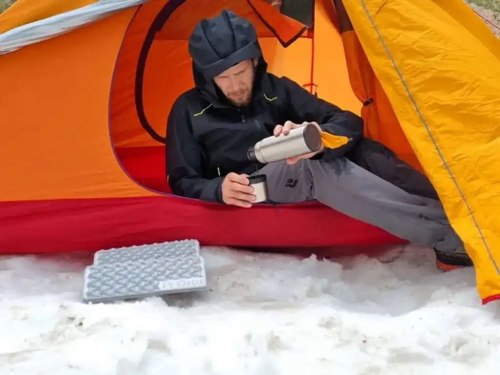 Dış Tente: 50D Nylon Double Ripstop (75 g/m²), ısı yalıtımlı alüminize poliüretan kaplama, 3000 mm su geçirmezlik, FR (alev geciktirici)
